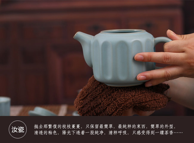 閑暇時(shí),尋一處雅致安靜地,看茶色流動(dòng),觀蟬翼隱現(xiàn),感汝瓷風(fēng)韻,讓這一抹天青帶你回到那個(gè)久遠(yuǎn)的年代。拋去那繁復(fù)的枝枝蔓蔓,只保留最簡單,最純粹的東西簡單的外型,清透的釉色,陽光下透著一股純凈、清粹呼吸,只感受那一縷茶香……