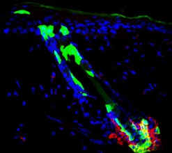 推薦原文出處: PNAS doi: 10.1073/pnas.1013098108 Wounding mobilizes hair follicle stem cells to form tumors Sunny Y. Wong and Jeremy F. Reiter1 Abstract A wide variety of human cancers are associated with injury. Although stem cells participate in tissue regeneration after wounding, it is unclear whether these cells also contribute to epithelial tumors. Human basal cell carcinomas (BCCs) are associated with misactivation of Hedgehog (Hh) signaling, commonly through acquisition of mutations in Smoothened (Smo). We have found that expression of an activated form of Smo by stem cells of the hair-follicle bulge and secondary hair germ does not induce robust Hh signaling or produce BCCs. However, wounding recruits these cells from the follicle to the wound site, where downstream Hh signal transduction is derepressed, giving rise to superficial BCC-like tumors. These findings demonstrate that BCC-like tumors can originate from follicular stem cells and provide an explanation for the association between wounding and tumorigenesis. |
